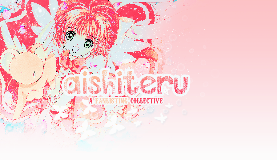 Greetings visitors and welcome to Aishiteru (the Japanese word for I Love You), a fanlisting collective which is part of LuxstellaORG. Since I'm not very active in the fanlisting community as I previously was, this collective holds the remaining fanlistings I have which I love with all my heart that were approved/adopted over at The Fanlistings Network and The Anime Fanlistings Network in their own respectable categories. Aishiteru also shows subjects I'm a fan of from various fandoms and a small wishlist of which I hope to have. Speaking to you is Michelle and I’m the one who has created this place within the web. If you have any questions or concerns, please feel free to contact me. Concluding this introduction, I hope you enjoy your stay here.